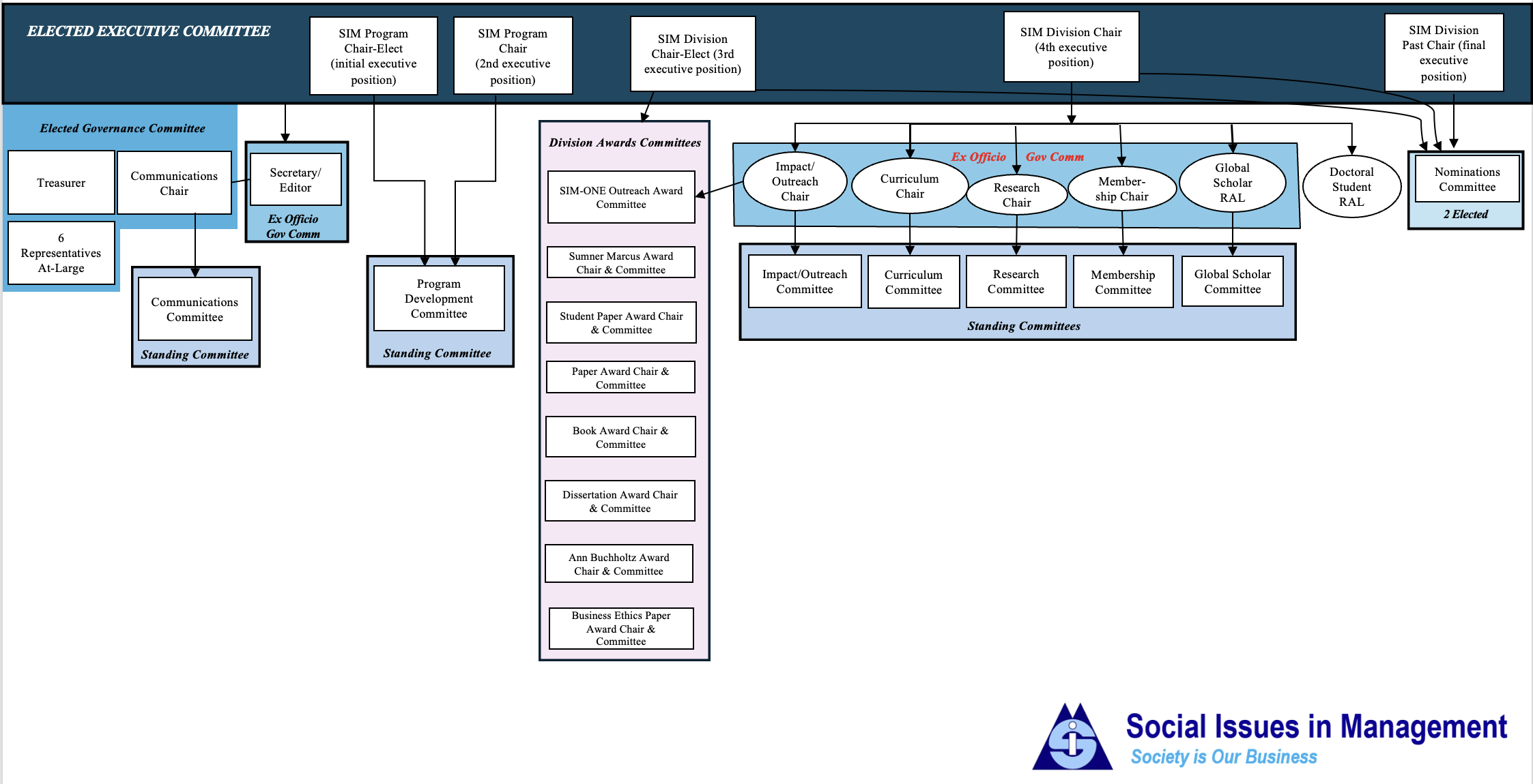 The Social Issues in Management (SIM) Division studies the social issues, institutions, interactions, and impacts of management. The common logic of SIM scholarship is our shared interest in understanding responsible behavior by organizations and the people and groups working in and around them. Such investigation leads us to ask fundamental questions about the ethical systems, roles, functioning, and legitimacy of business institutions. Members also bridge scholarship to applied social practices, developing understanding and methods to promote social change and sustainable development.